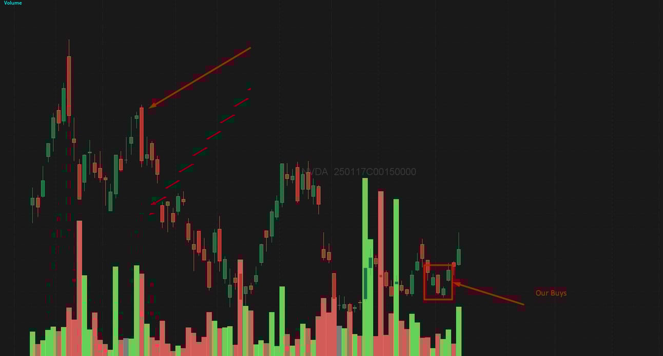 What we found was not only an opportunity based off of the larger picture (semiconductors not breaking down against the broader market), but also the technical setup of NVDA which gave us a clearly defined high R:R trade and an opportunity to play an incredible options setup.