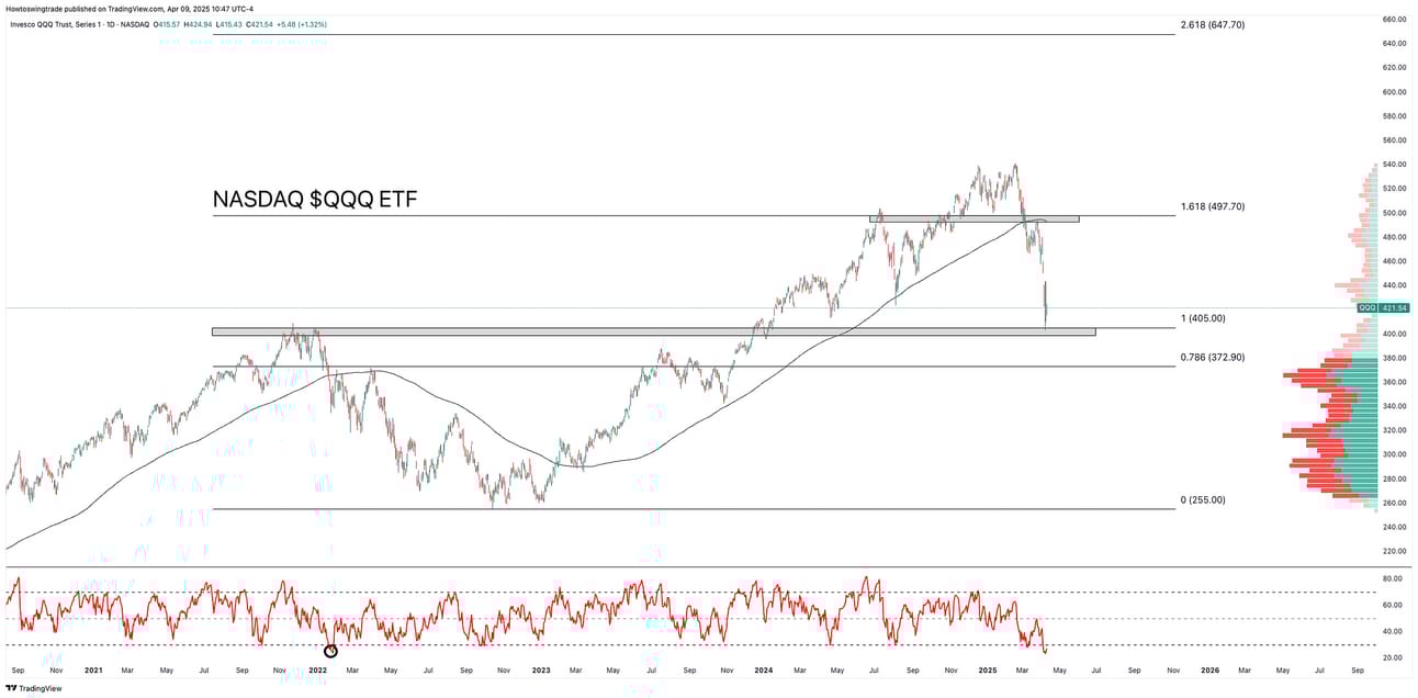 Much like SPY, there’s an opportunity for QQQ to bounce here and fill the gap up towards the 450.00 level, representing a potential 7.5% move to the upside from current prices.