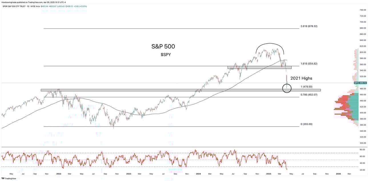 A break below the 478.50 level invalidates the idea of a tactical bounce higher and likely brings a deeper correction in equities.