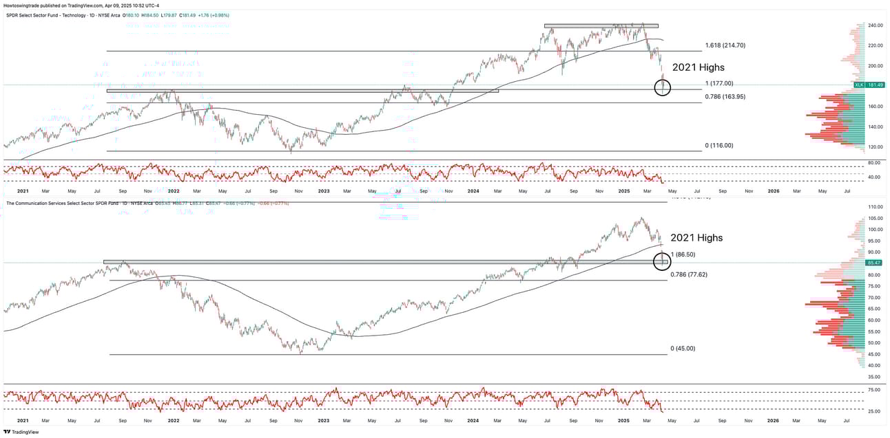 Both sectors are holding their crucial 2021 highs: XLK is holding the 177.00 level and XLC is holding 86.50 level.